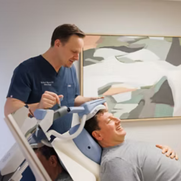 Relax in our comfortable treatment chair while the Exomind TNS device gently stimulates targeted brain regions. Most patients read, listen to music, or simply rest during the 20-30 minute session.